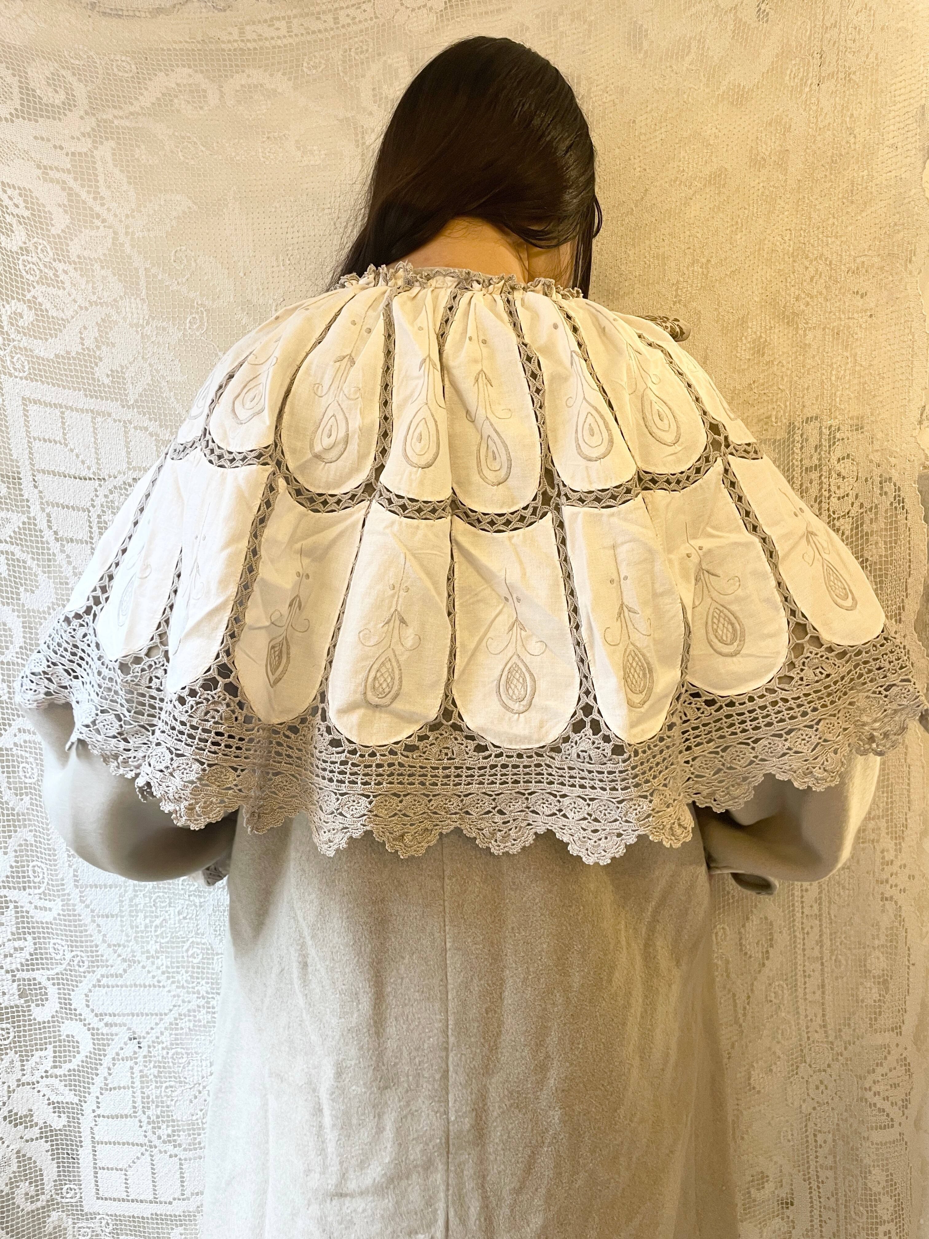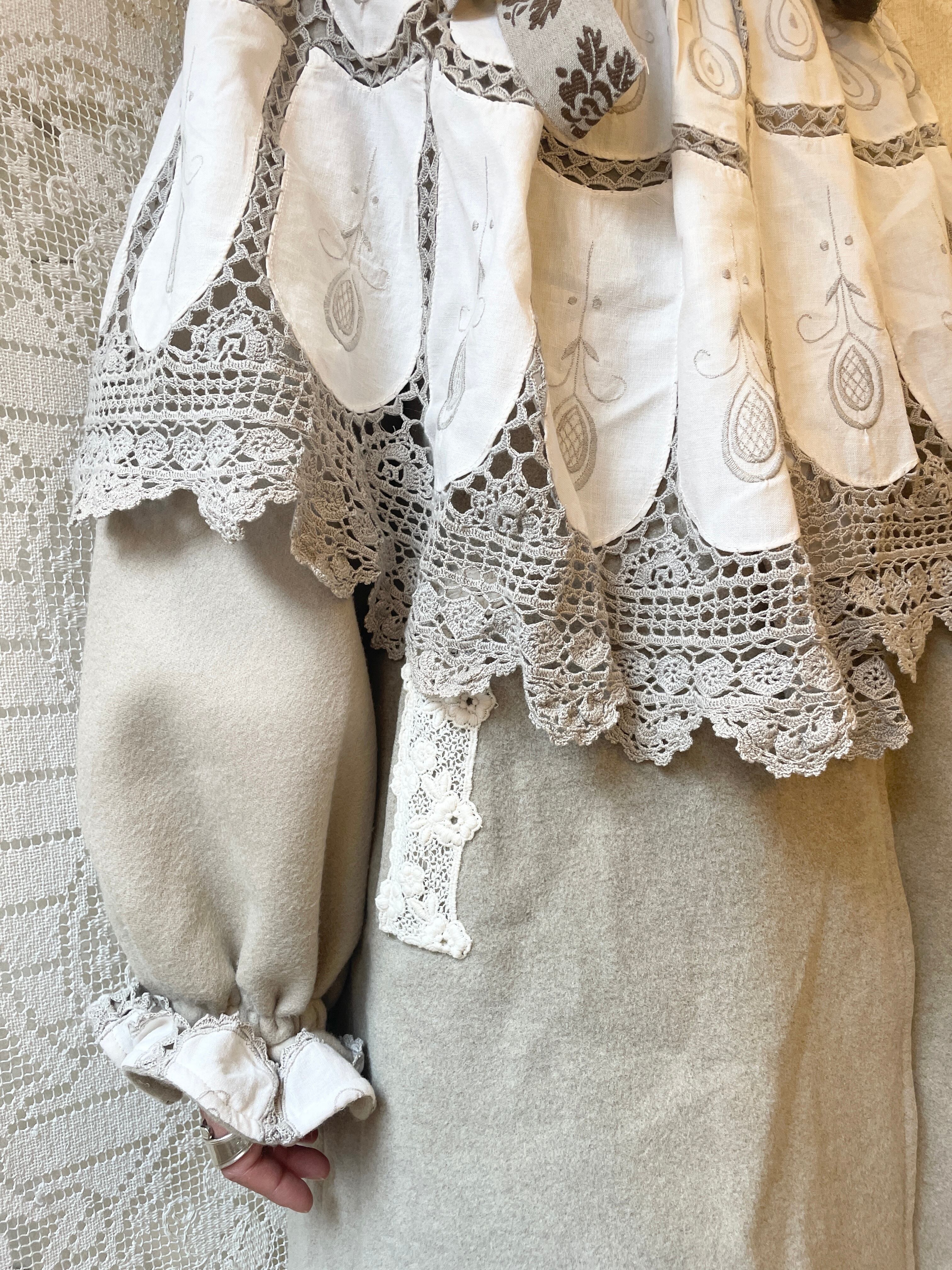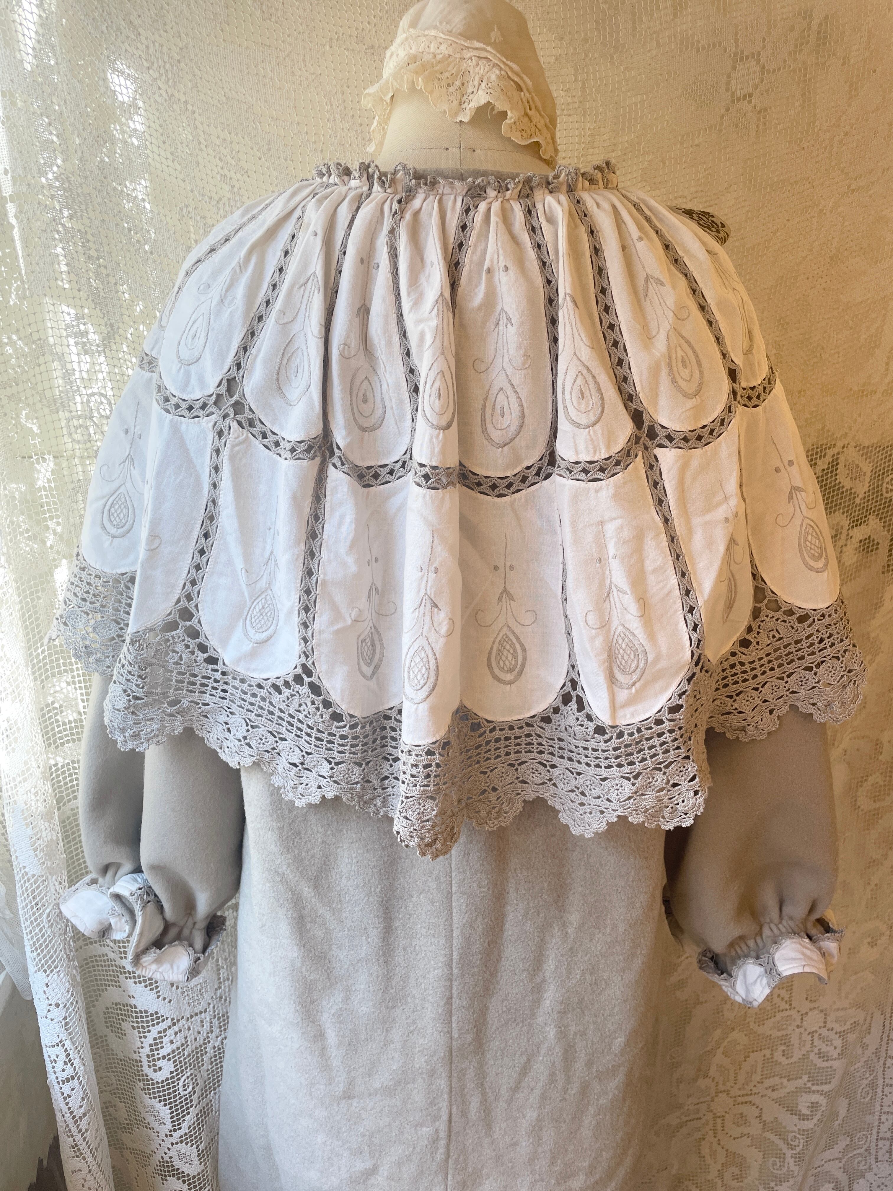 vintageグレージュのウールコートにケープみたいな大きな襟がついたリメイクアイテム。