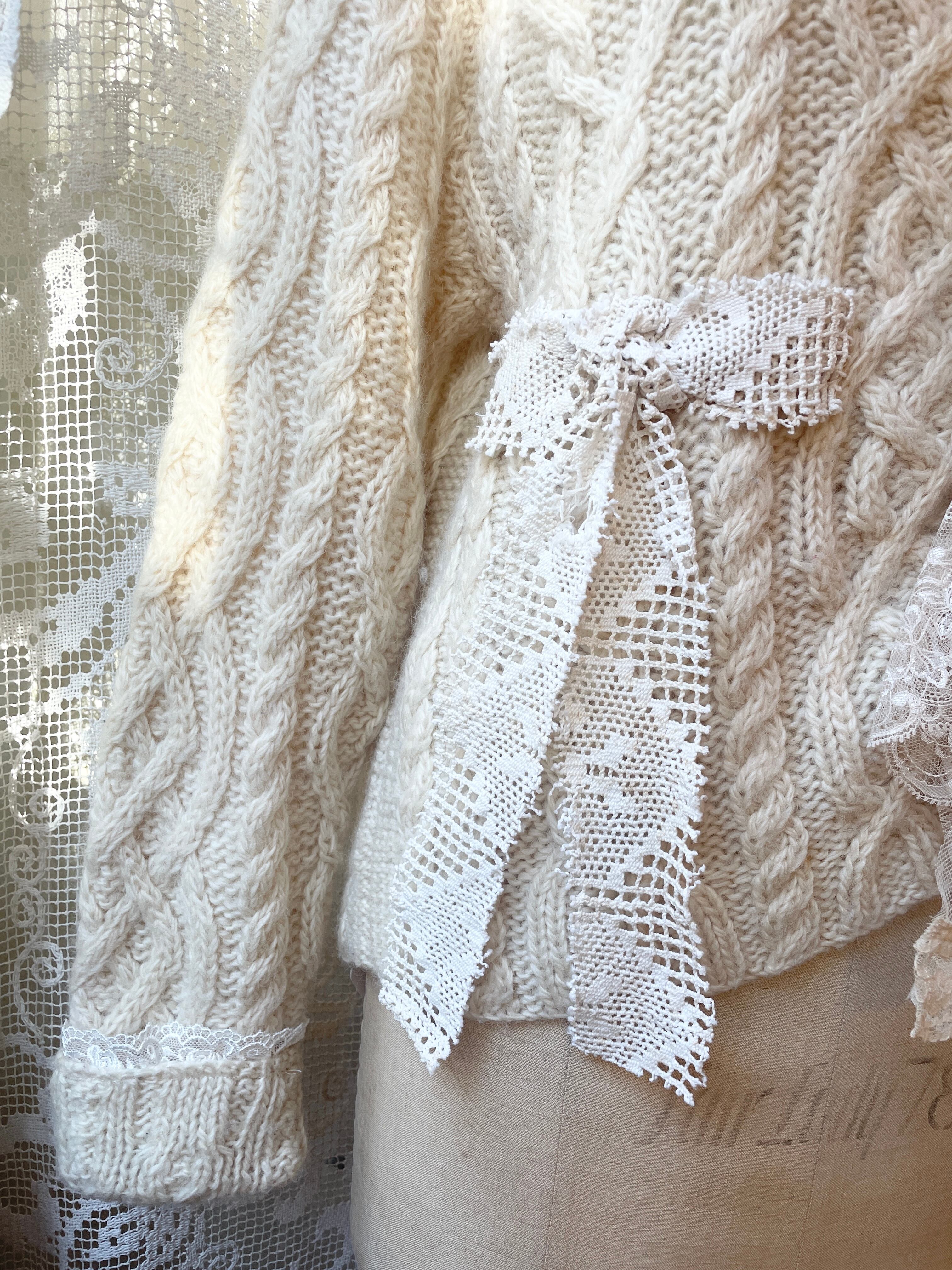 肉厚の生成り色のあったかウールセーターをリメイクしたアイテム。