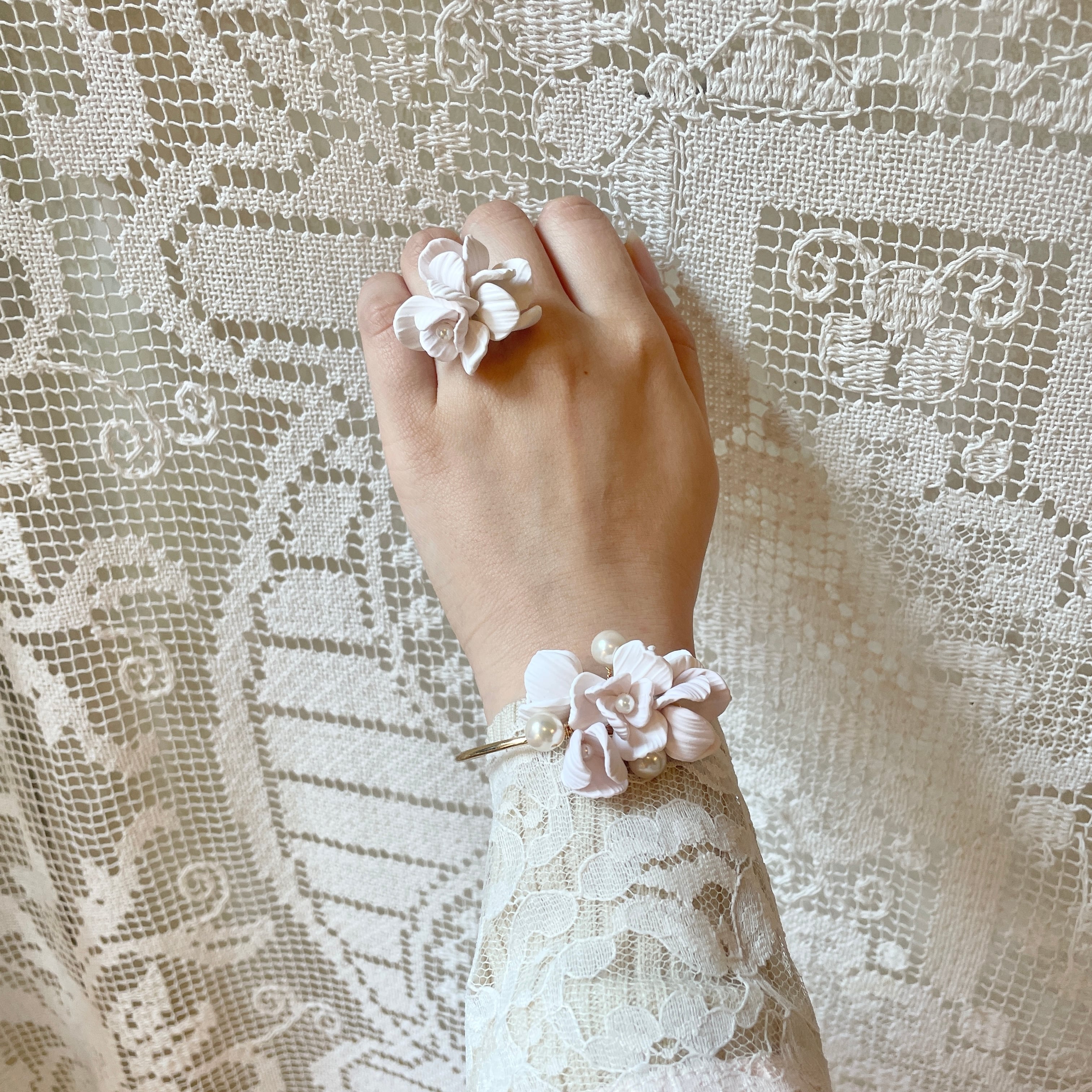 花びら一枚一枚のパーツからハンドメイドで制作した繊細なデザインのアクセサリー。