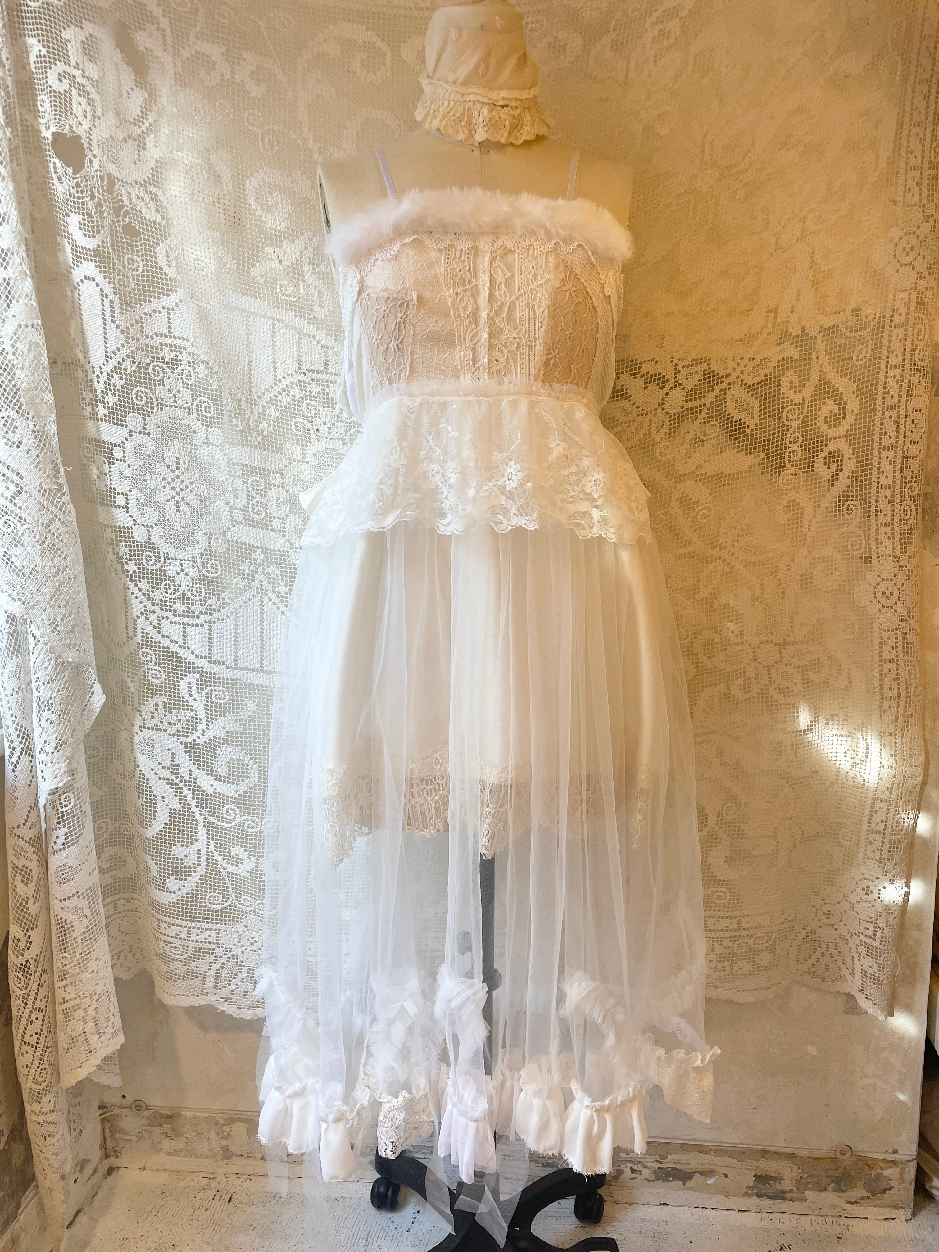 いろいろな種類のコットン、レース、チュール素材を贅沢に使用していてとても綺麗です。